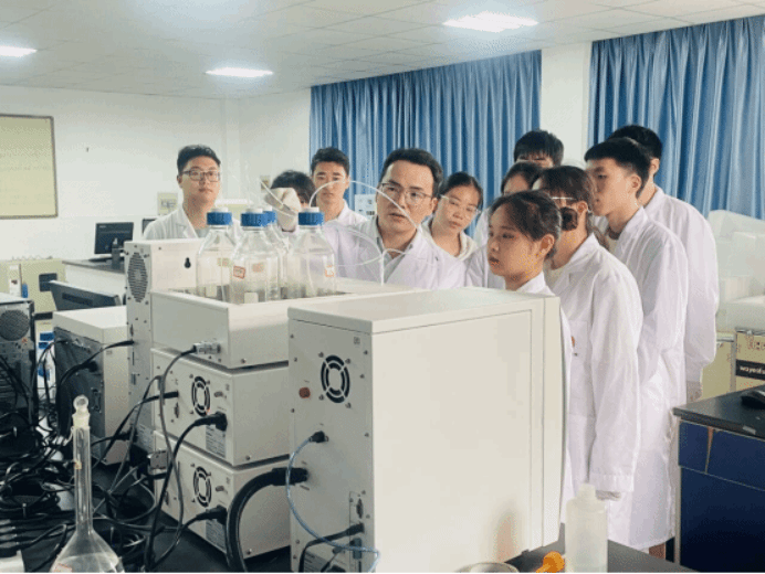 学生正在进行高效液相色谱仪的学习