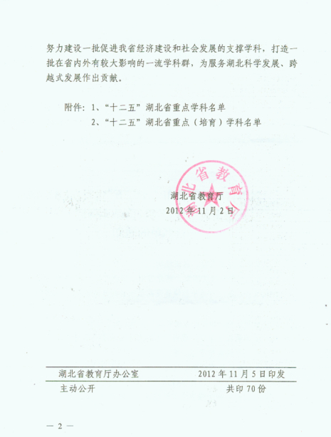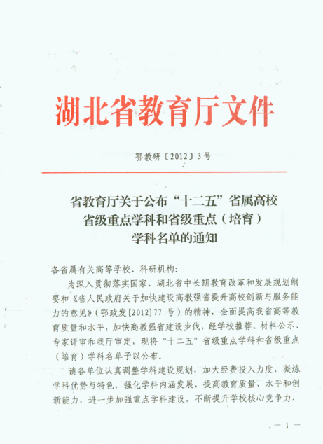 省教育厅公布省级重点学科的通知