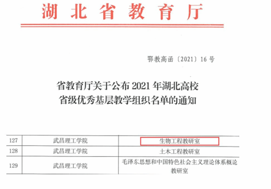 生物工程基层教学组织是以生物工程专业为基础,以省重点学科为依托,以全国离子色谱标准创新研究基地、生物多肽糖尿病药物湖北省协同创新中心和高校专业综合改革试点项目为平台,以3个省级优秀中青年科技创新团队和中青年学术骨干为主力队伍,在长期的教学实践、教学改革和科学研究的基础上发展形成的一个优秀基层教学组织。现拥有湖北省战略性新兴(支柱)产业人才培养、普通本科高校专业综合改革试点、联合培养硕士研究生、生物多肽糖尿病药物湖北省协同创新中心等十余个人才培养和科研平台。