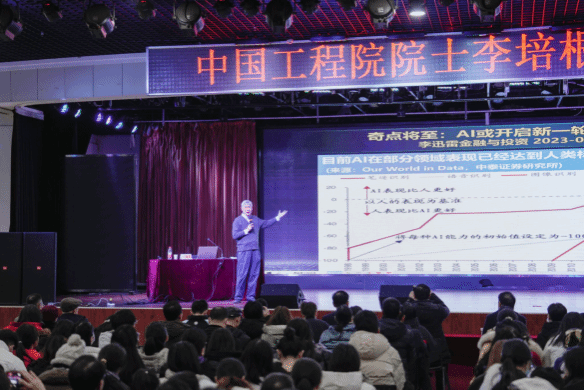 报告会上,李培根院士从“透视VUCA”“拐点来临”“准备转型”“问题导向”四个方面,用详实的数据、丰富的案例,讲述人工智能的最新发展成就,分析人工智能对人类社会特别是对高等教育产生的深刻影响。