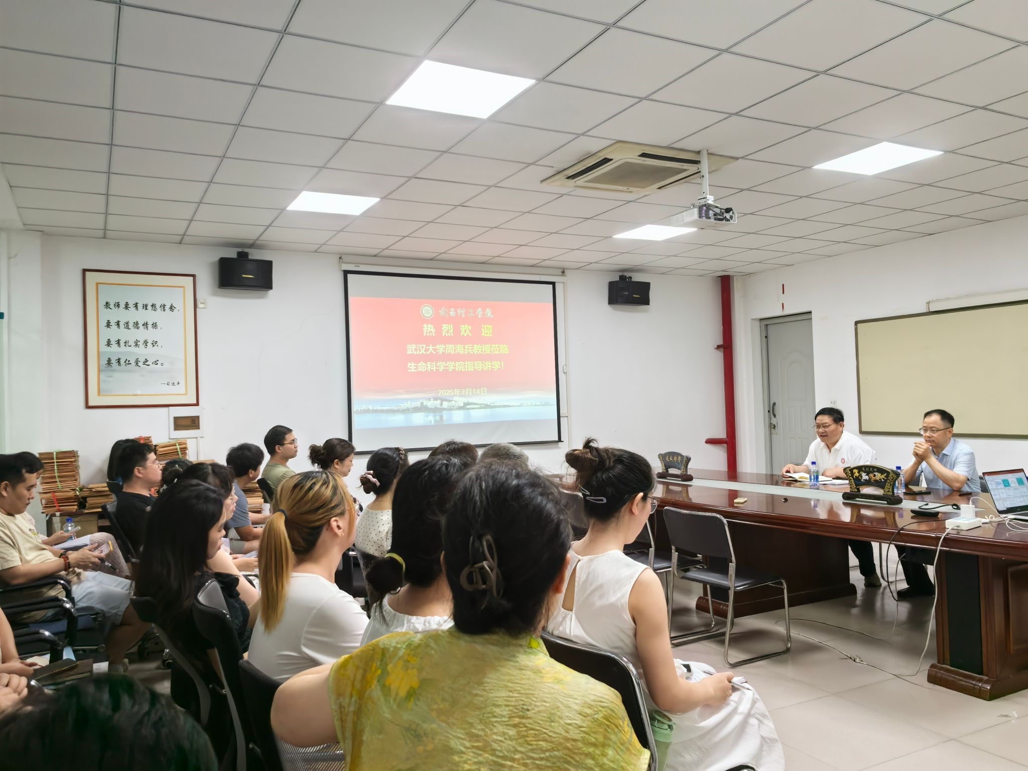 2025年7月14日上午9时,太阳成城集团tyc234cc在生科405会议室成功举办国家自然科学基金申报专题培训会。本次培训会特别邀请武汉大学珞珈特聘教授周海兵担任主讲嘉宾,由学院院长、学校副校长崔海容教授主持,太阳成城集团tyc234cc全体教师参加了此次培训。