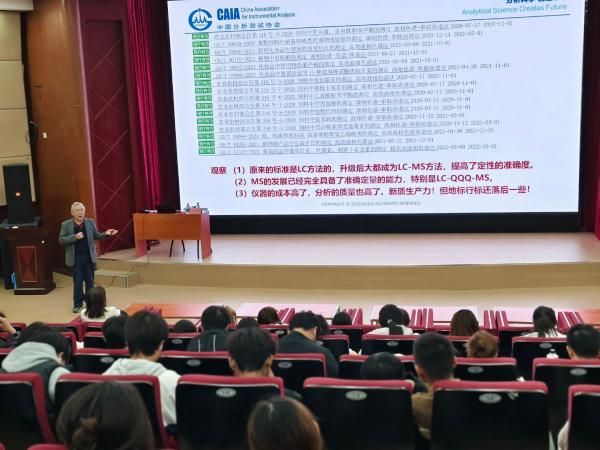 在学术讲座中,刘虎威教授还指出现今食品安全分析面临的挑战,如非法添加药物、在食品中添加药物衍生物宣称抗检测以及新型毒品等挑战。面对这一系列的挑战,刘教授认为政府监管部门要研究食品安全趋势,建立预警机制,结合人工智能,形成高效的监测机制,做到舆论监督,全民监督和科学监督。