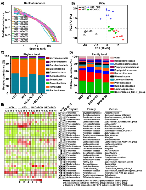 图3 PCO对于HFD小鼠肠道菌群紊乱的调节作用