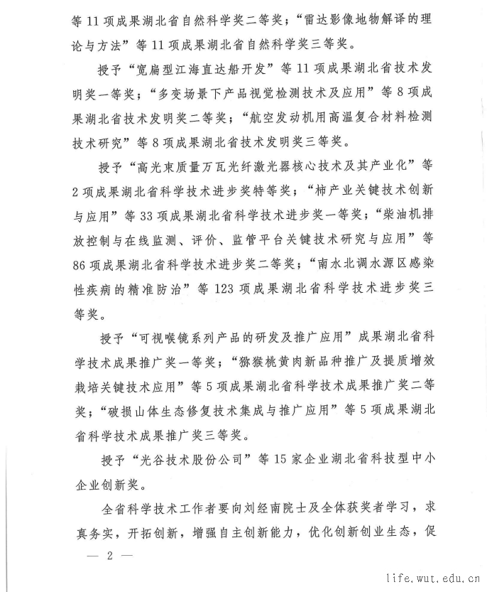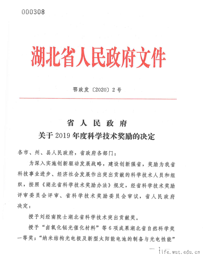生科学院喜获2019年度湖北省科技进步三等奖