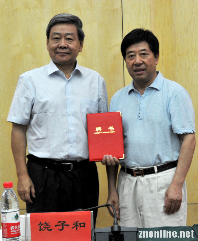 校长赵作斌教授为饶子和院士颁发聘书