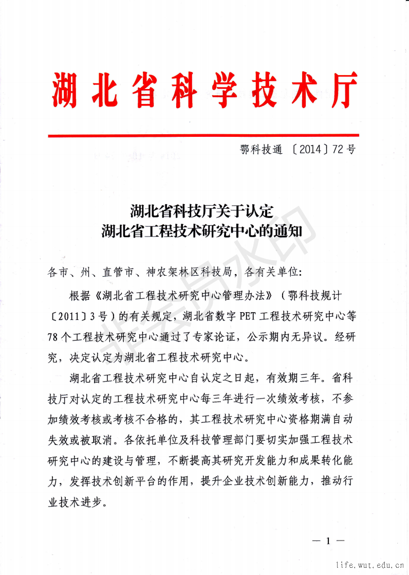 湖北省工程技术研究中心的通知