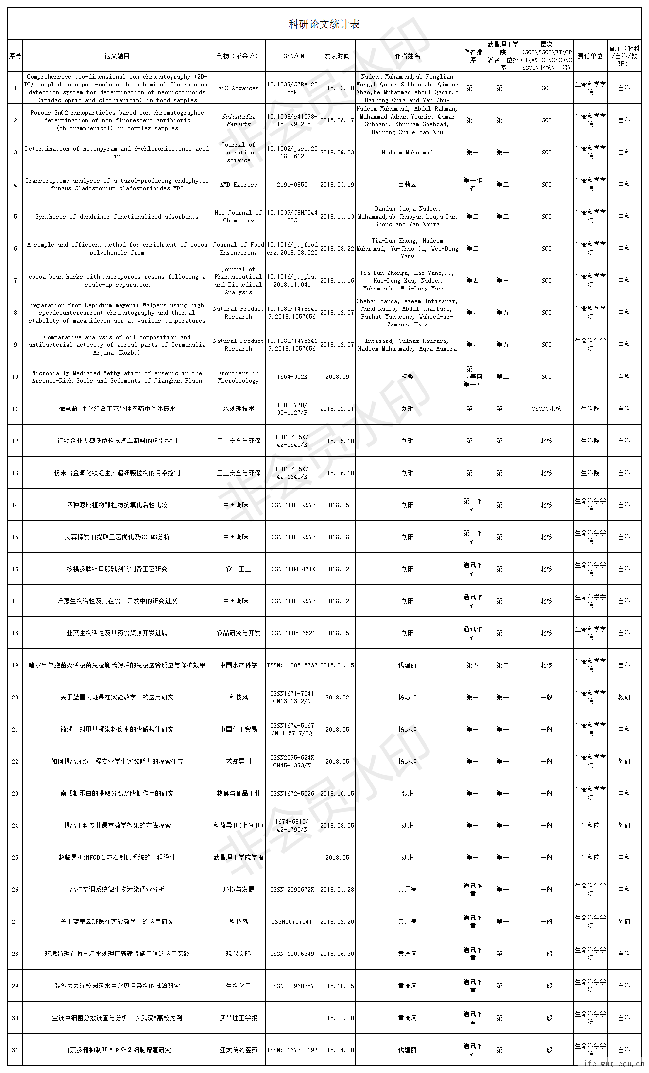 | 科研论文统计表 |