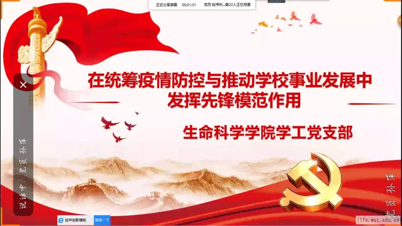 5月11日消息 (通讯员 邹欢 报道 ) 据校党委工作安排,为继续毫不放松抓紧抓实抓细疫情防控工作,统筹推动学校事业发展,进一步激励党员在学校各项工作中发挥先锋模范作用,生科党支部全体党员及预备党员于5月11日下午召开主题党日活动。
