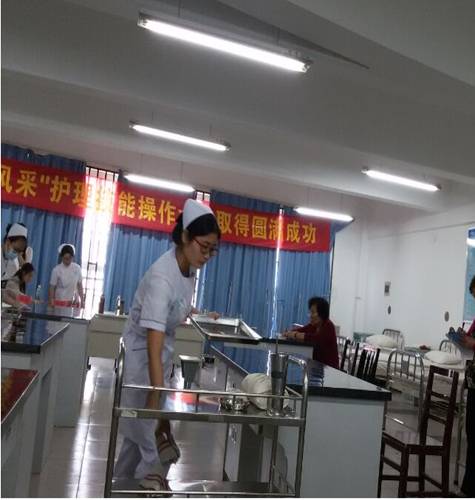 作为一名高护班级的学生,我本人非常有幸的参加了这个比赛并进入决赛,初赛的形式主要是以笔试为主,经过笔试成绩筛选出进入决赛的同学,决赛主要考查整理床单位和无菌操作的形式开展,针对的是大一大二护理班级的学生,而评委也是学院的一些专业老师。在比赛过程中,评委老师细心的提出了同学们在操作中的错误与不足,并提出了很多可行性的建议。据报道,高护1402班的雷晨同学,作为一名大一学生,既报名参加了无菌操作,也参加了整理床单位的比赛,在最后的颁奖环节中,付淑余老师说:“我们参加比赛的学生中,有的同学两组比赛都报名了,这种同学学习积极性很高,值得大家学习,希望主办方能专门在设立一个鼓励奖,鼓励我们的学生以后多多参与护理实验操作。
