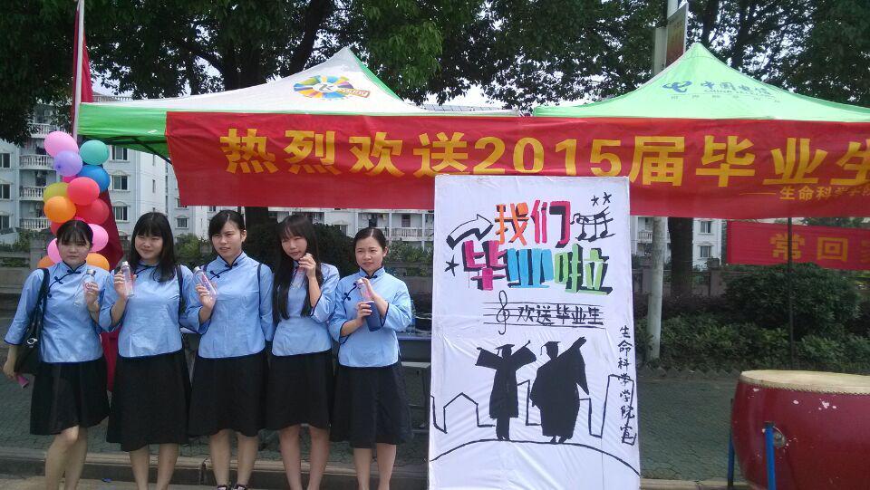 据了解,此次欢送毕业生活动分别在行政楼前和太阳成城集团tyc234cc进行。活动的前一天,各部门学生干部们已经为这次活动展开了一系列准备,在18日晚上已将帐篷,鼓,凳子,桌子全部搬到了行政楼前,并为毕业生准备了印有生命科学学院字样的纪念水杯,贴心的后勤组还安排好了人员值班表和水等物资。