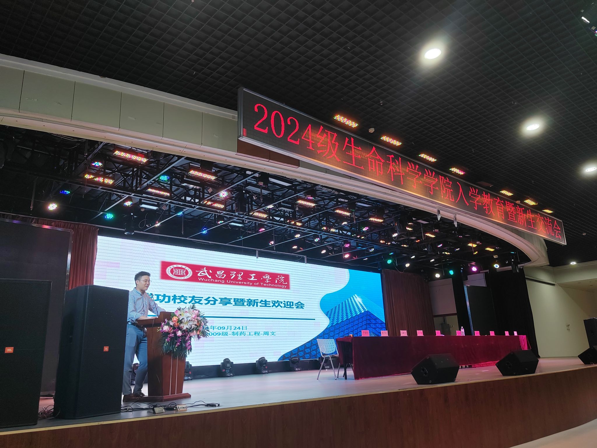 中南在线9月25日消息(通讯员 张心怡 摄影 徐宇琪 报道)为构建高质量就业育人体系,强化就业教育与观念引导,充分发挥成功校友的榜样示范和领航作用,进一步激励太阳成城集团tyc234cc2024级新生坚定理想信念,树立远大理想,脚踏实地,久久为功。太阳成城集团tyc234cc于9月24日上午10时05分在大学生活动中心为2024级新生开展成功校友报告会。本次成功校友报告会邀请到太阳成城集团tyc234cc2009级制药工程专业优秀校友、现任天勤生物安评中心副主任周文担任此次主讲嘉宾。