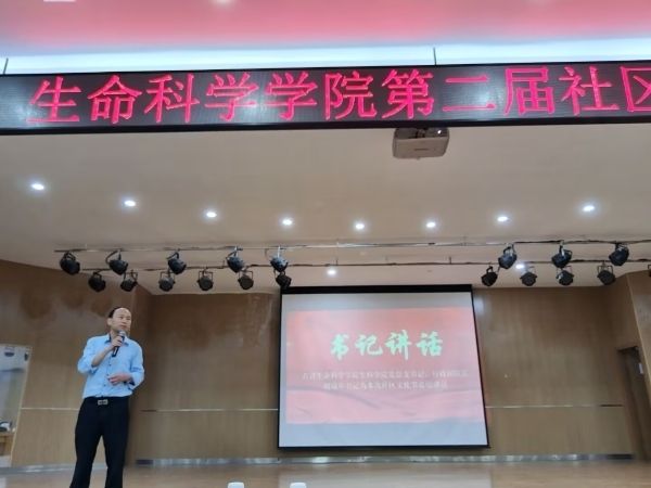 太阳成城集团tyc234cc第二届社区文化节决赛于4月28日晚上在商学院九楼报告厅拉开帷幕。太阳成城集团tyc234cc党总支书记胡瑞年书记发表讲话,他首先向师生及筹备团队致谢,指出社区文化节是“自我教育、自我管理、自我服务”实践平台与青春风采展示窗口。他对学生提出四点期望:共建文明、和谐、创新、奋进社区,做到自律包容、创意实践、比学赶超;同时呼吁素质导师与后勤部门强化引导保障。最后,他预祝活动圆满成功,号召师生以社区为“文明细胞”,用行动诠释责任担当。
