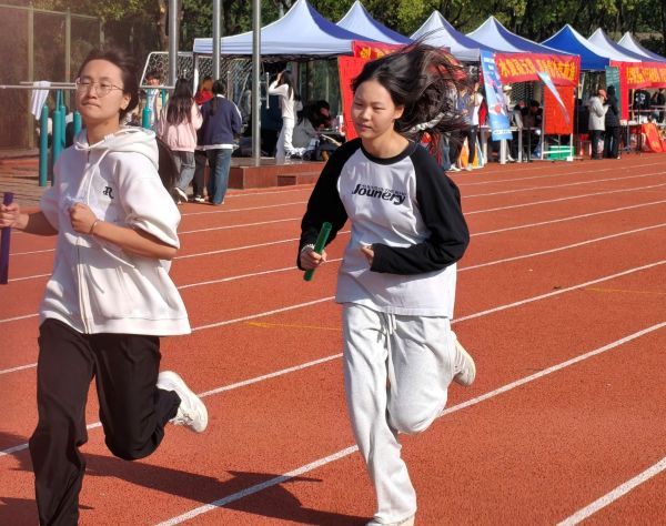 比赛结束后,记者采访到生物制药2501许陈优优同学,她表示:“学院间接力赛,首棒的我面对含体育生的强敌,既紧张又压力拉满。奔跑时唯有全力冲刺、稳传接力棒。虽然团队获第六,但是队友们同心拼搏、彼此鼓劲的模样,远比名次更珍贵。” (完)