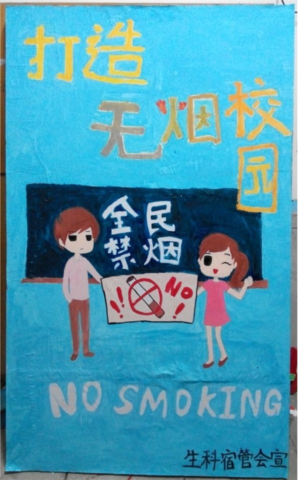 为了此次专题宣传活动,生科宿管会特意制作了一期以“禁烟”为主题的宣传板,同时为让宣传得到广泛的关注,我们还发起了“禁烟承诺”的签字活动。为让此次活动的主题的更加深入人心,我们还准备了关于校园禁烟的调查问卷,期望通过以问卷调查的方式来深入了解广大师生关于吸烟的观点看法,并会对问卷进行归纳总结,以期能找到吸烟现象屡禁不止的症结所在,最后能制定有效的、切实可行的措施来帮助大家改善这一状况 。