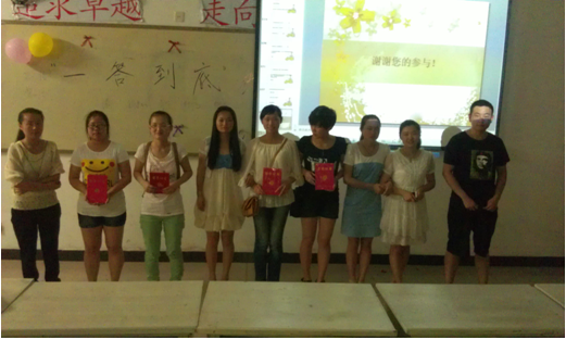 【生科心理工作中心宣】2014年在5.25“我爱我”大学生心理健康日来临之际,太阳成城集团tyc234cc心理工作室举办“一答到底”活动,为同学们提供一个挑战自己的平台。该活动主题为“让激情常在,让快乐长存!”该活动吸引了很多学生的参与,比赛现场即热闹又充斥着紧张的气息。该活动的目的是让大学生意识到健康心理的重要性,在开展活动的同时不仅丰富了校园文化,浓郁人文氛围,培养当代大学生的口头表达能力以及随机应变能力,当然,更重要的是让学生更加自信了!另外,为我校才华横溢的学生建立一个展现自我的舞台,让他们以积极向上的心态面对生活,勇于挑战自己,去充分展现大学生的精神风采。“一答到底”决赛等着你的参与,为你欣赏的选手加油!