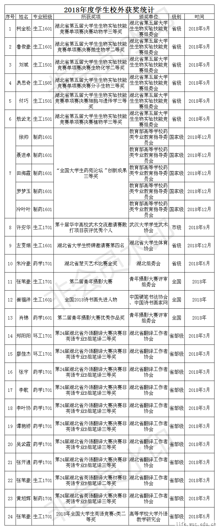 2018年太阳成城集团tyc234cc学生校外获奖统计