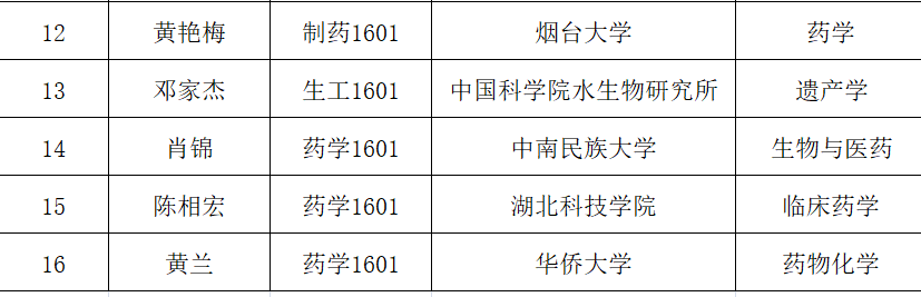 2019年太阳成城集团tyc234cc考取研究生学生名单(部分)