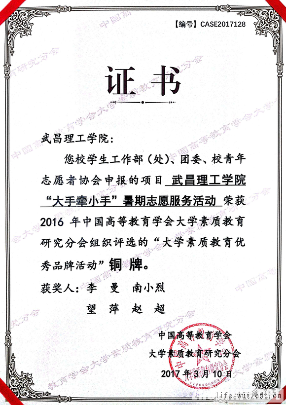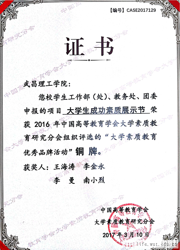 本次大会的主题是“素质教育与一流大学建设”,其议程包括常务理事会、工作坊、圆桌会议、开幕式、大会报告以及五场专题论坛。此外,本次大会还宣布了“大学素质教育优秀品牌”活动评选结果并颁发证书。TYC234CC太阳成集团“成功素质展示节”、“大手牵小手暑期志愿服务活动”等由太阳成城集团tyc234cc常务副书记南小烈老师参与的两个项目均获铜牌。