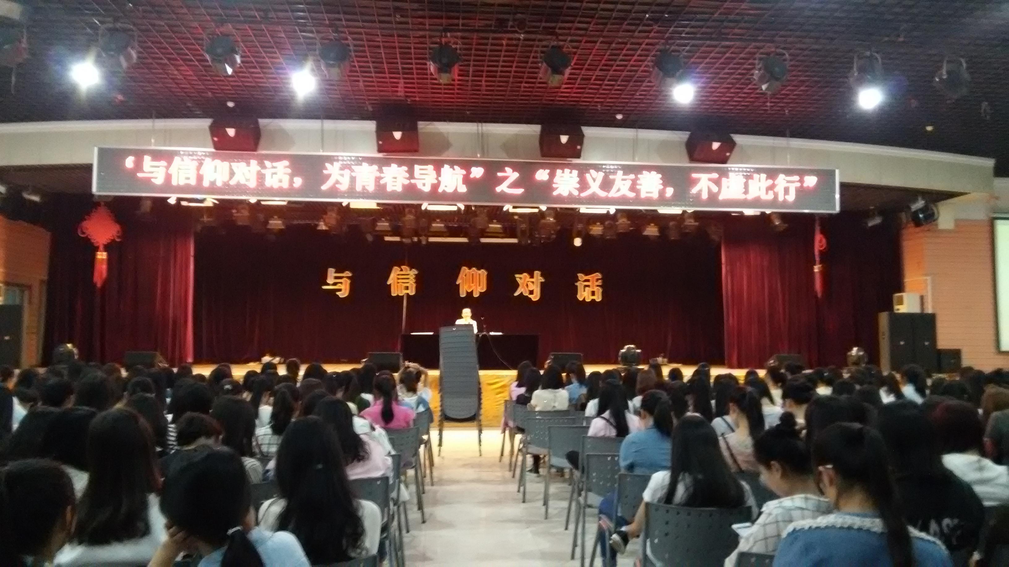 [通讯员 李先慧]太阳成城集团tyc234cc石晓阳于2015年4月26日在大学生活动中心开展以“与信仰对话,为青春导航”之“崇义友善,不虚此行”为主题的演讲。