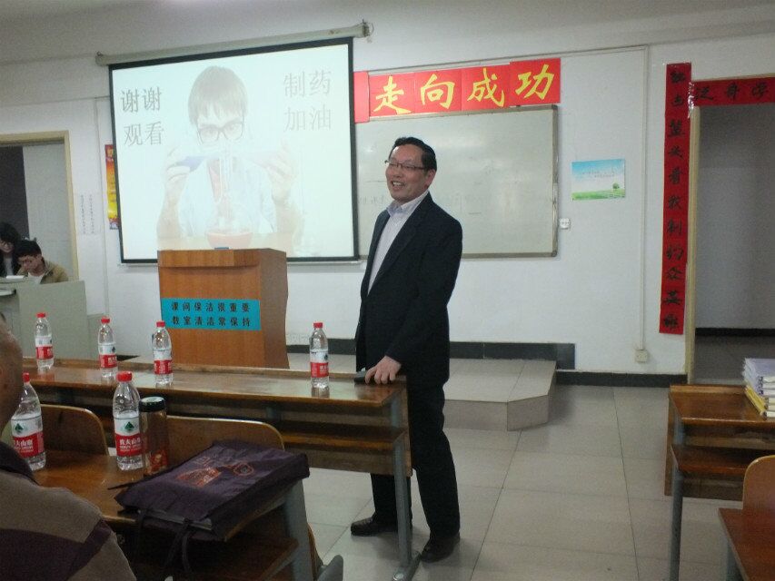 制药系刘阳主任汇报了2015年制药专业考研情况,展示了三年来制药工程系考研成功的学生,一张中国地图中南、华南地区和沿海地区几乎每个省都有我们的学长学姐。当谈及到攻克每一个省时,刘阳老师脸上洋溢着灿烂的笑容,并且对我们在校的每一个年级都寄予了殷切的希望,赢得了在场师生热烈的掌声。