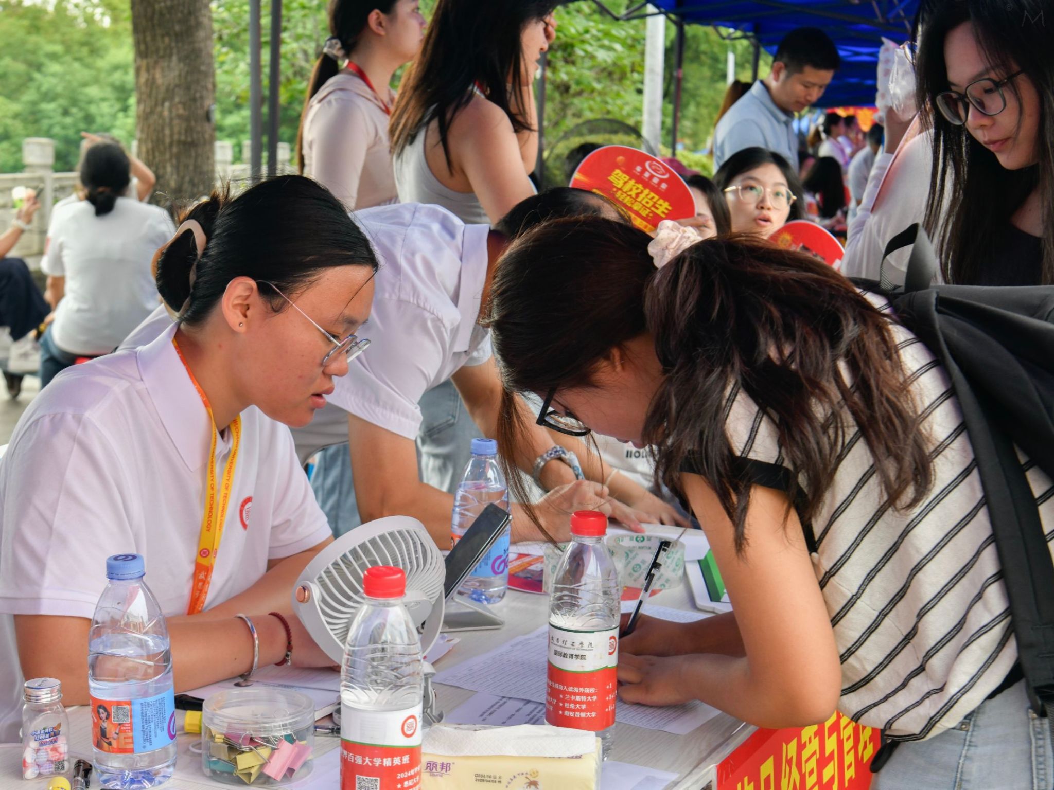 镜头下,志愿者整装待发,经培训后熟练引导新生完成报到手续,用耐心解答消解新生与家长的疑虑;咨询处前,工作人员细致回应各类问题,让报到流程高效顺畅。
