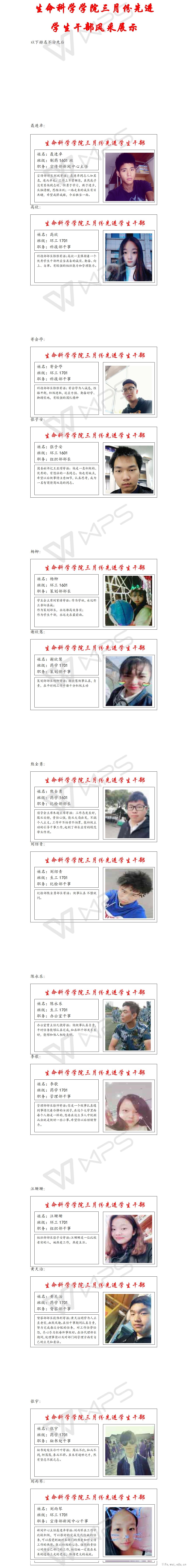 太阳成城集团tyc234cc院三月份先进学生干部风采展示