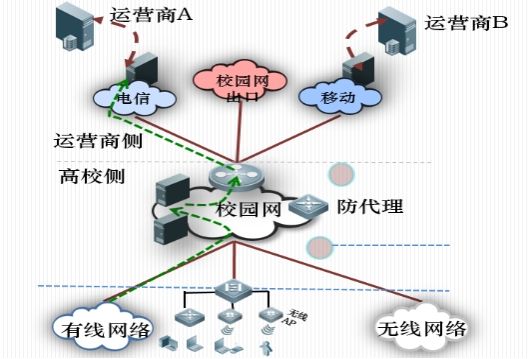 访问外网:当需要访问互联网时,通过唯一账号一次认证拨号完成代理上互联网。保证学生宿舍和其他各类业务的外网访问,同时保证校园网络安全。