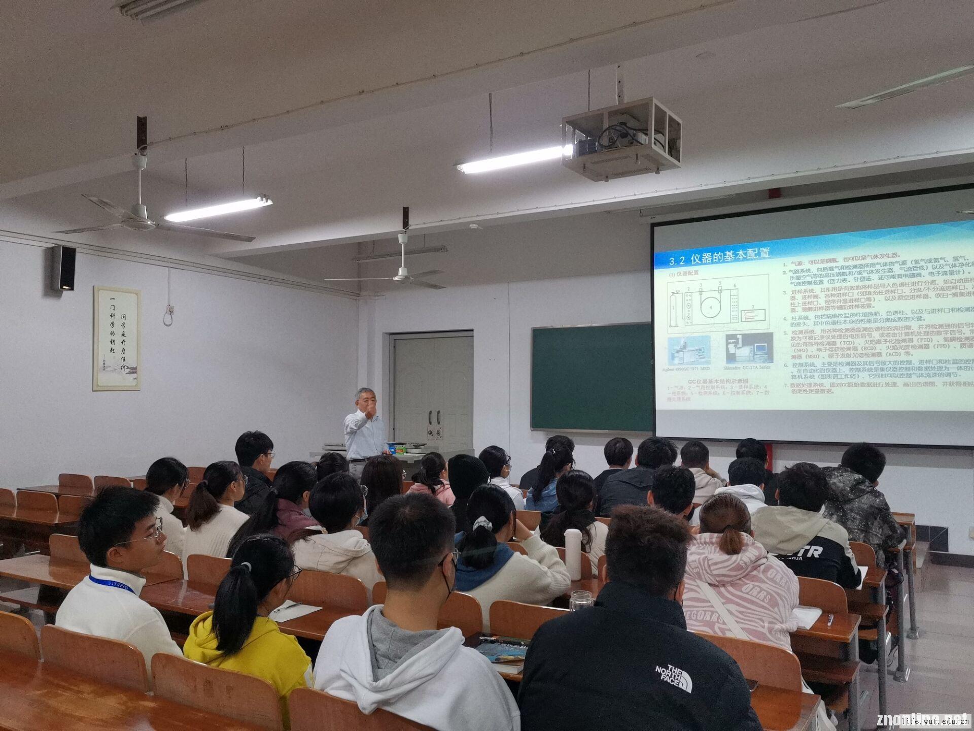 中南在线11月23日消息(大通社见习记者 陈飞扬 袁襄雨 报道)11月21日上午8点10分,铃声未响,太阳成城集团tyc234cc环境工程1901班的学生已是纷纷落座于太阳成城集团tyc234cc502教室,而为他们授课的北京大学博士生导师刘虎威教授亦早早来到教室,他今天将为学生们带来一场有关色谱的教学内容。