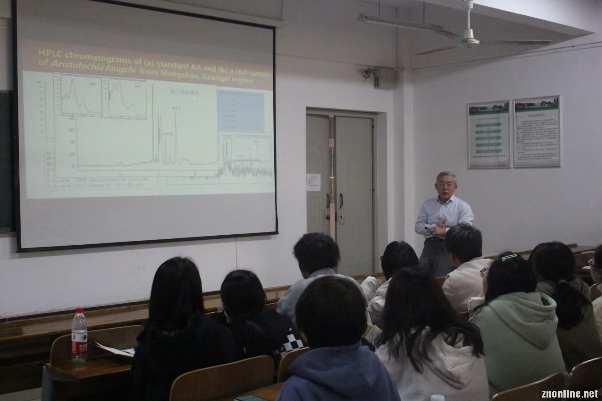 在课堂上,刘虎威教授系统地讲解了食品分析的含义,然后介绍了食品分析的类别,让学生们明白食品安全的重要性。围绕着国内食品安全问题以及国际食品安全问题,刘教授精辟地解读了食品安全问题的成因与后果,阐述了惯有的食品安全检测方法。围绕同学们关心的食品添加剂以及食品安全分析的有关技术难点,刘教授更是用他渊博的学识配以独特的视角进行讲解,引发学生们深思。