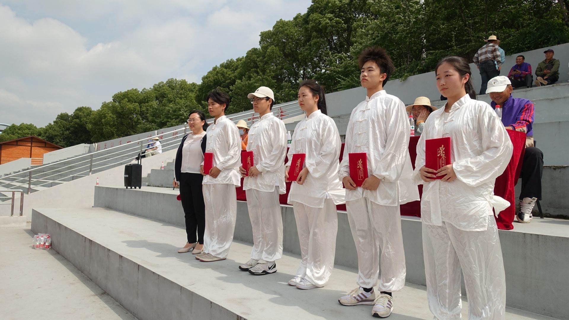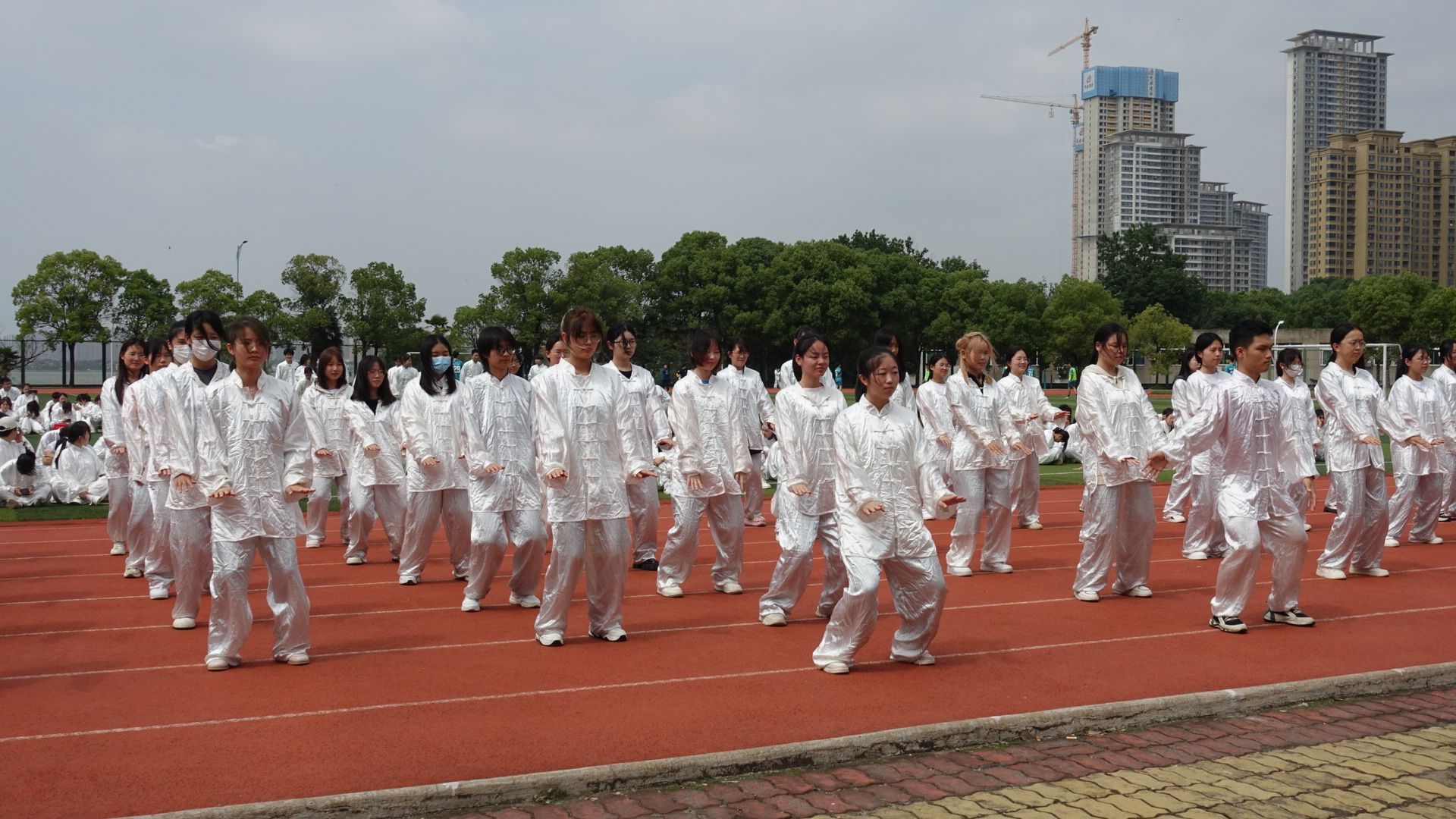 太极拳含蓄内敛、连绵不断、以柔克刚、急缓相间、行云流水的拳术风格使习练者的意、气、形、神逐渐趋于圆融一体的至高境界,而其对于武德修养的要求也使得习练者在增强体质的同时提高自身素养,提升人与自然、人与社会的融洽与和谐。上场的参赛队伍均统一服装,微风下太极服白衣飘飘,同学们动作行云流水,宛若蛟龙,动静结合,以柔克刚,一气呵成,一推一收展示太极之美,一招一式传递太极之韵,步步轮转的风流姿态展示中华武术文化的独特韵味。