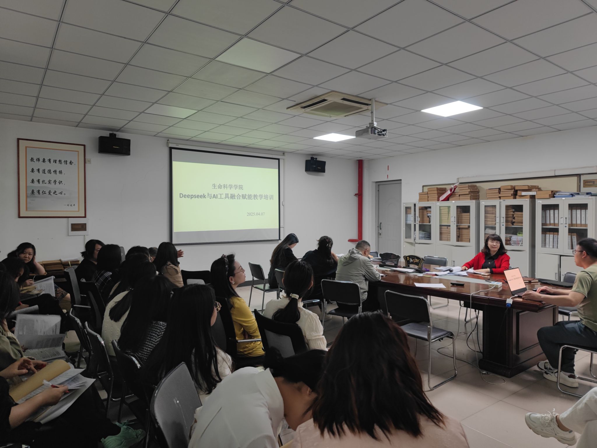 2025年4月7日,为探索大模型时代教学范式革新,太阳成城集团tyc234cc于生科405会议室举办“DeepSeek+AI工具融合赋能教学”专题培训,全院教师参与研修。本次培训聚焦DeepSeek智能教学平台与AI工具的深度联动,通过场景化教学设计、智能资源生成等模块,为传统教学注入智能动能。